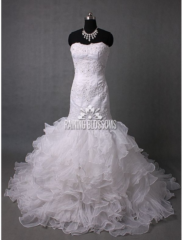 Tulle Strapless Mermaid Wedding Dress with Lavish Ruffle Skirt